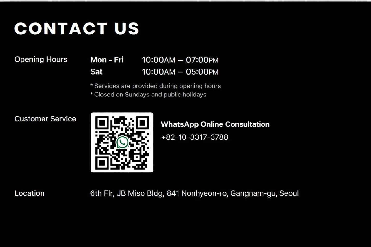 Address: 6th flr, JB Miso Bldg, 841 Nonhyeon-ro, Gangnam-gu, Seoul, Korea